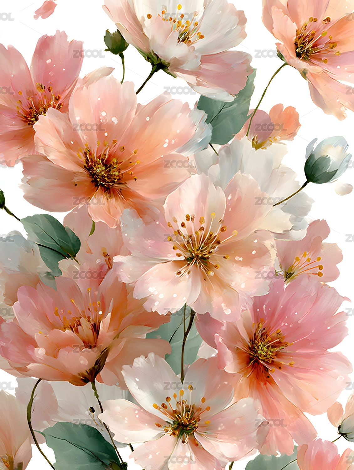 花卉,花枝,绿叶,图案,背景,插画,矢量,唯美,清新,自然