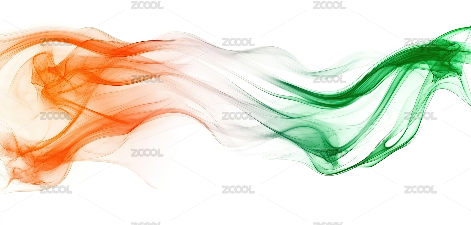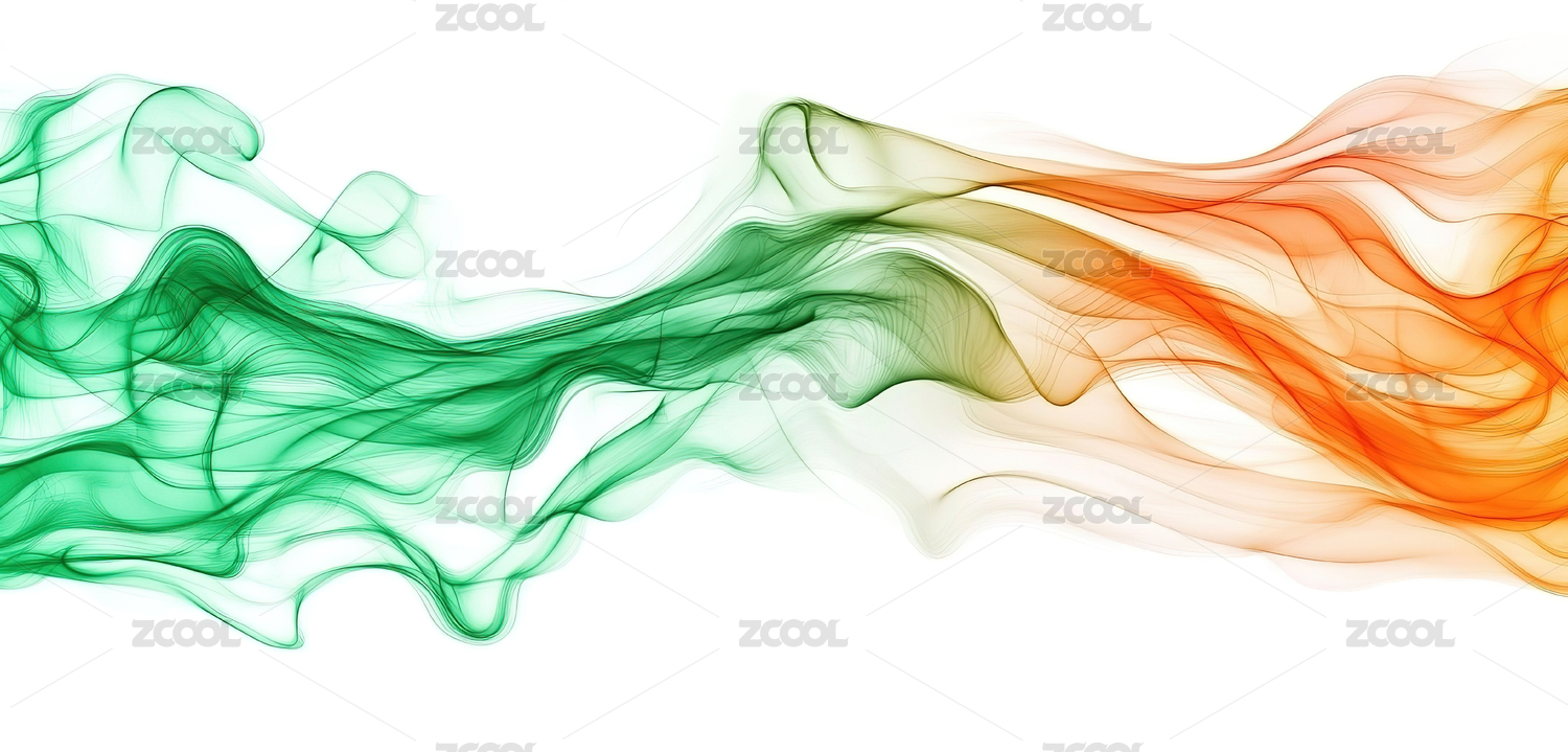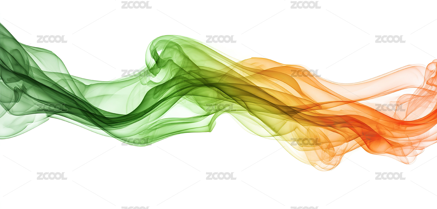 绿色与橙色交织的抽象烟雾