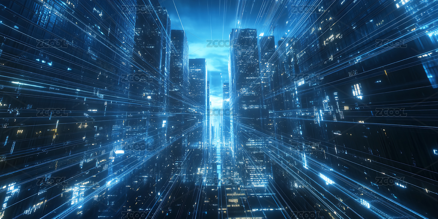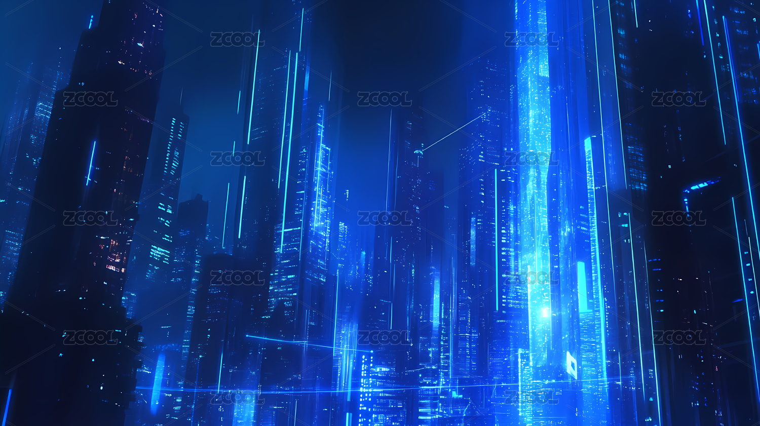 科技,未来,蓝色,光线,空间,建筑,城市,夜景,赛博,楼宇