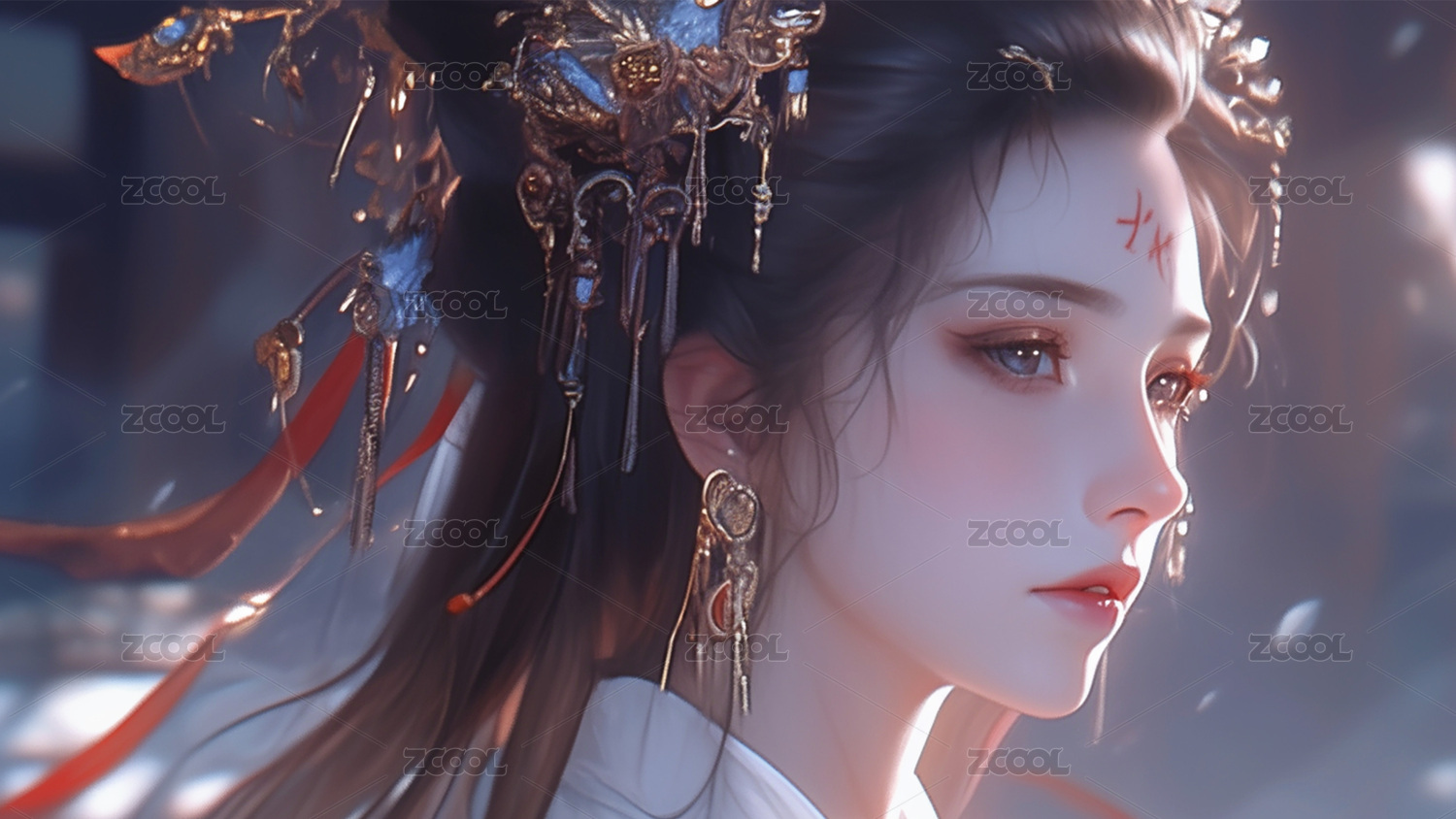 古风女子身着红衣发饰华丽
