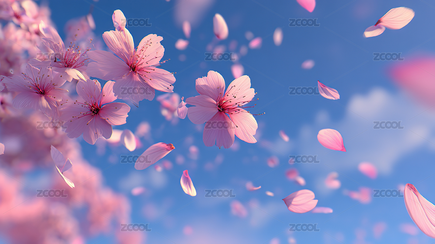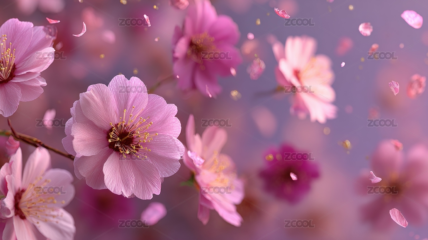 粉色樱花飘落的梦幻场景