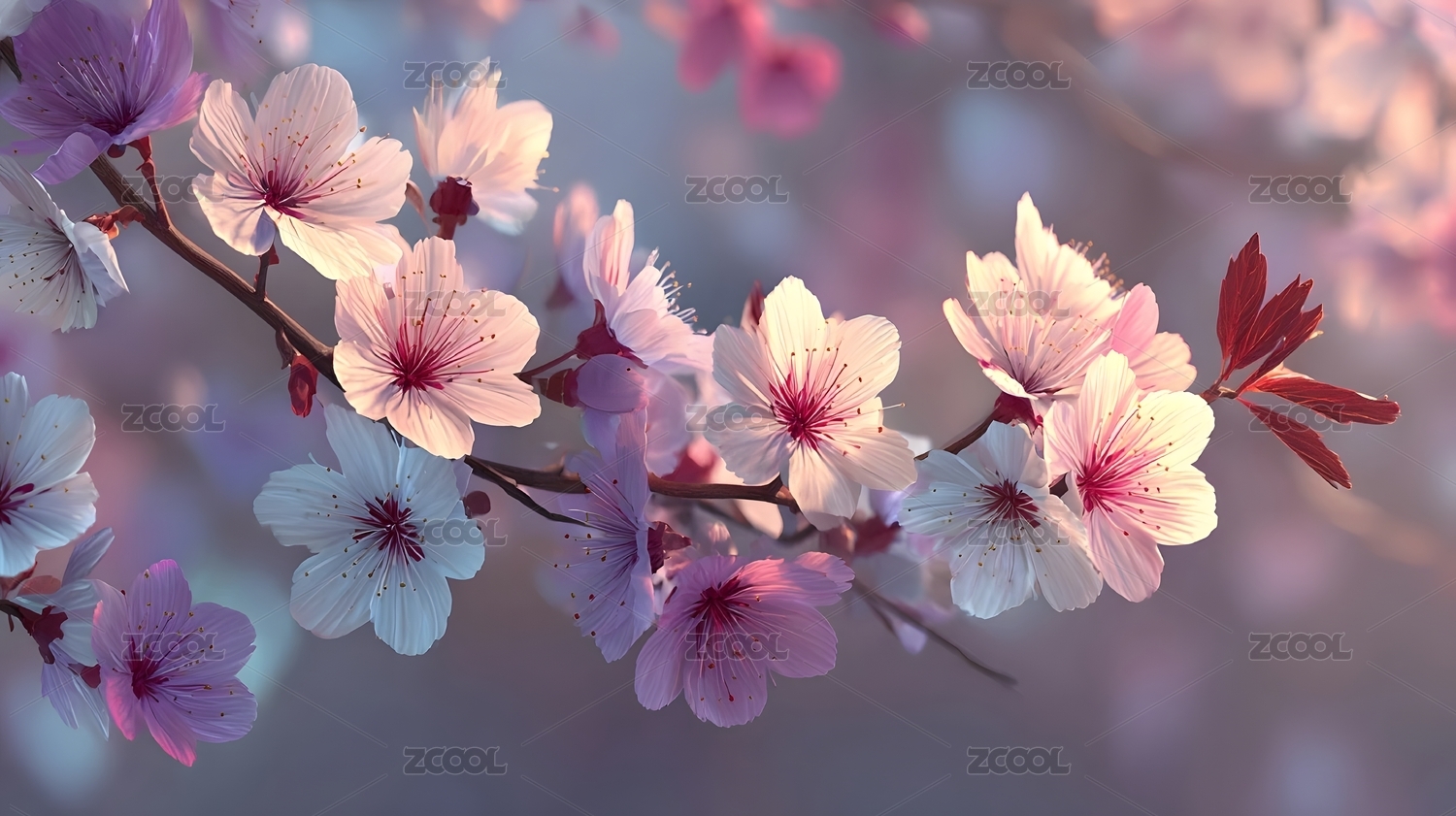梦幻般的粉蓝樱花绽放