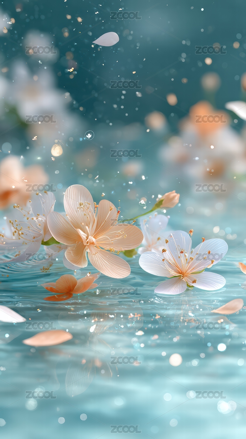 花朵,光斑,飘落,梦幻,唯美,浪漫,光影,背景,插画,花瓣