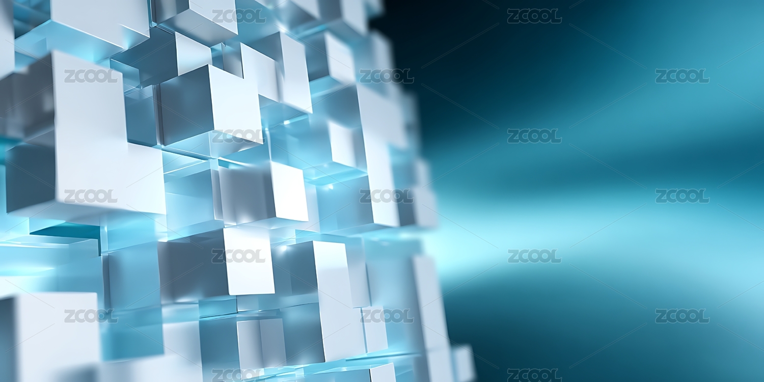蓝色立体方块3d科技商业背景