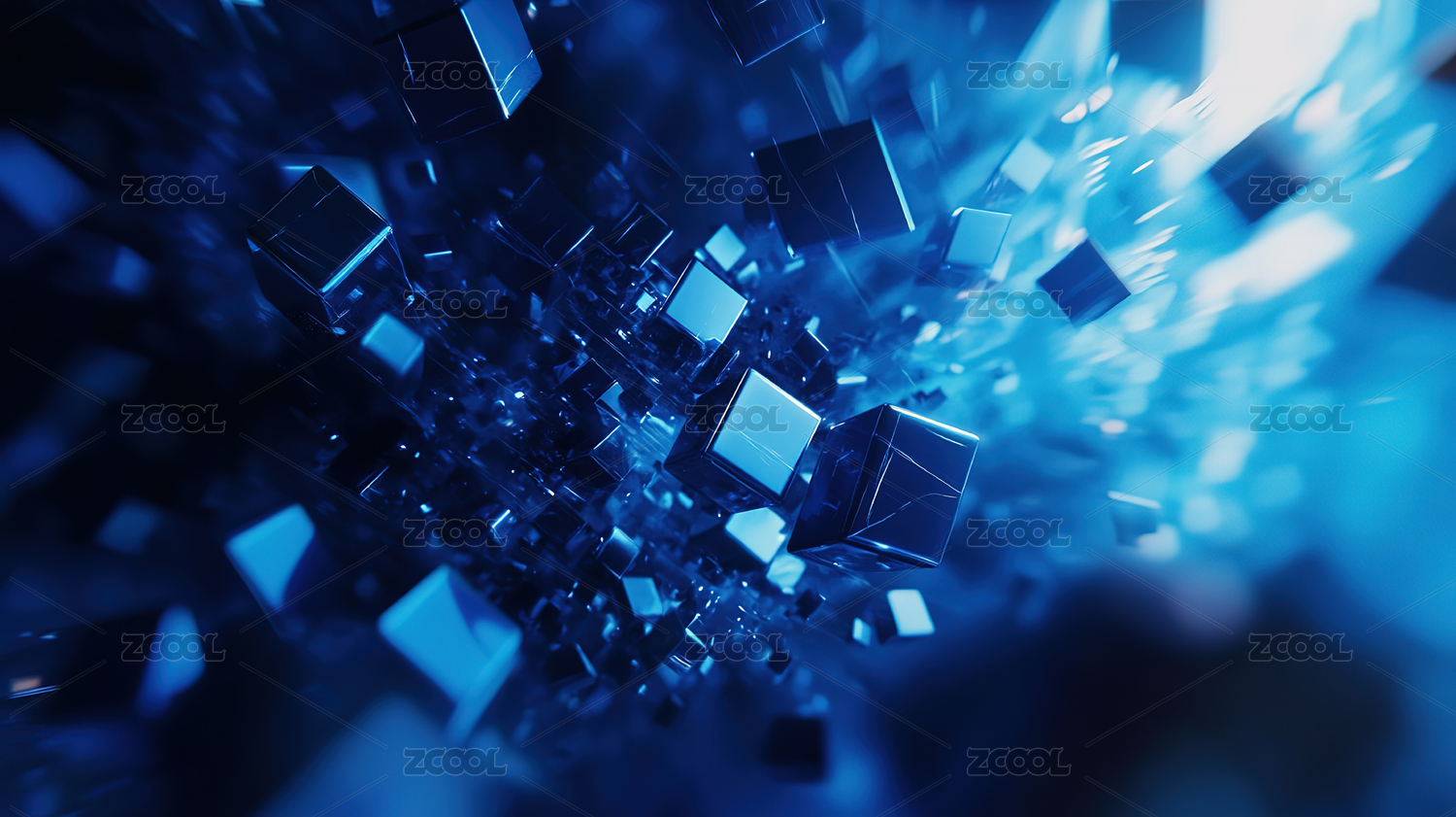 蓝色立方体光效抽象图案