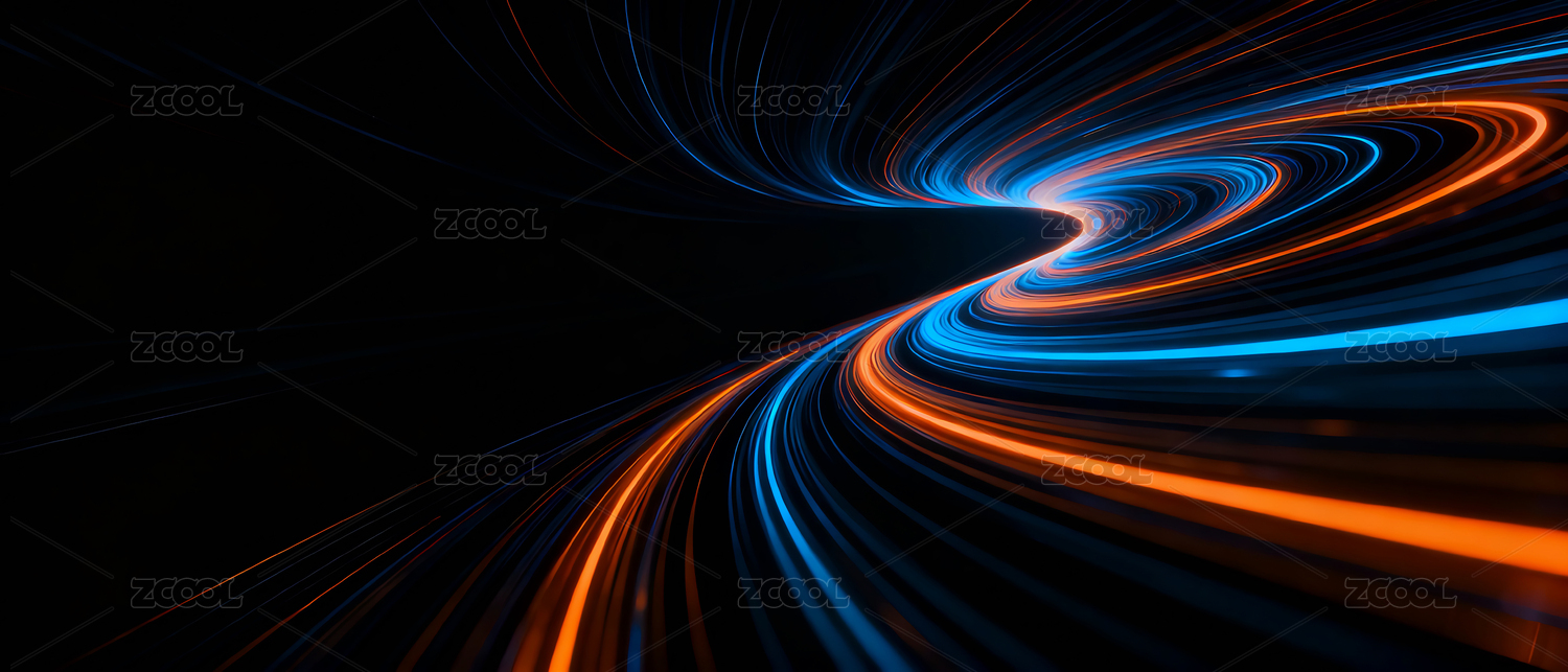 数码蓝色发光漩涡线条抽象图形海报网页背景