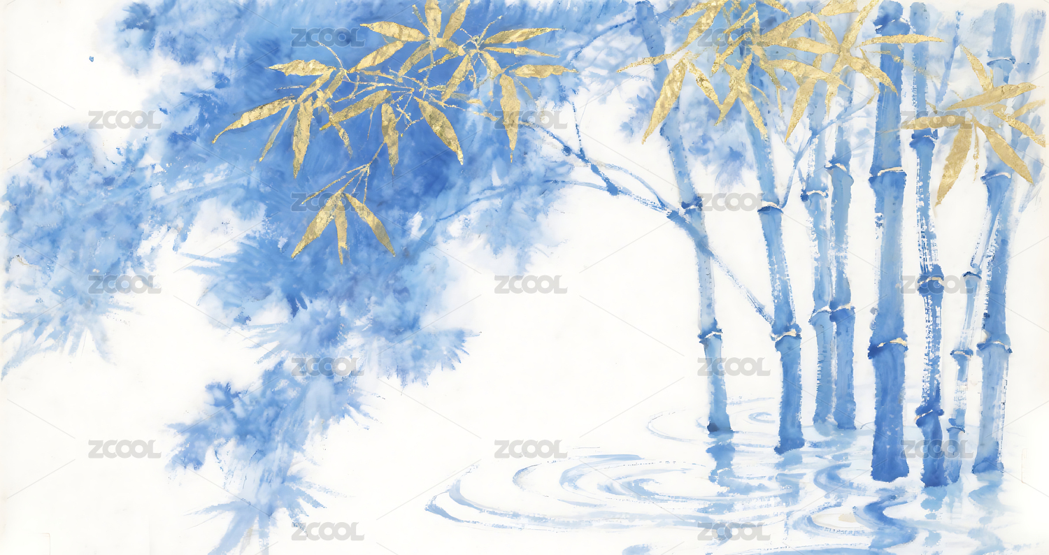 金箔,钴蓝,竹林,水墨,晕染,背景,壁纸,中式,艺术