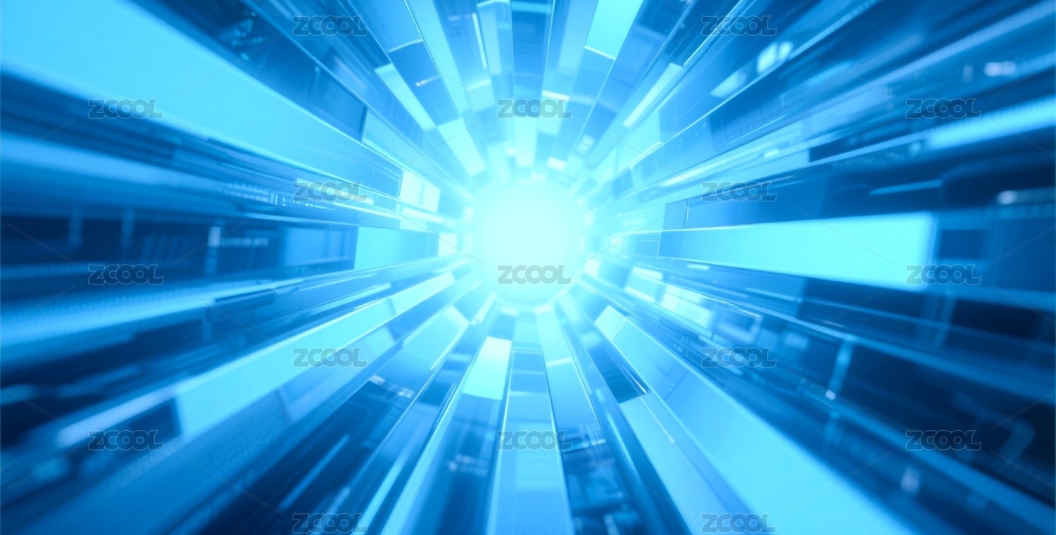 蓝金色立体玻璃条块从中间向四周扩散背景
