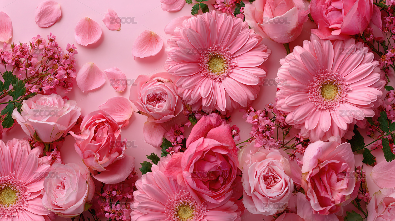 粉色礼盒与玫瑰花束 节日浪漫温馨场景