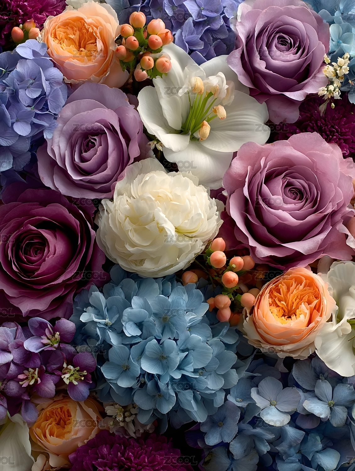 花卉,玫瑰,绣球花,花朵,粉色,紫色,柔美,浪漫,插画,矢量