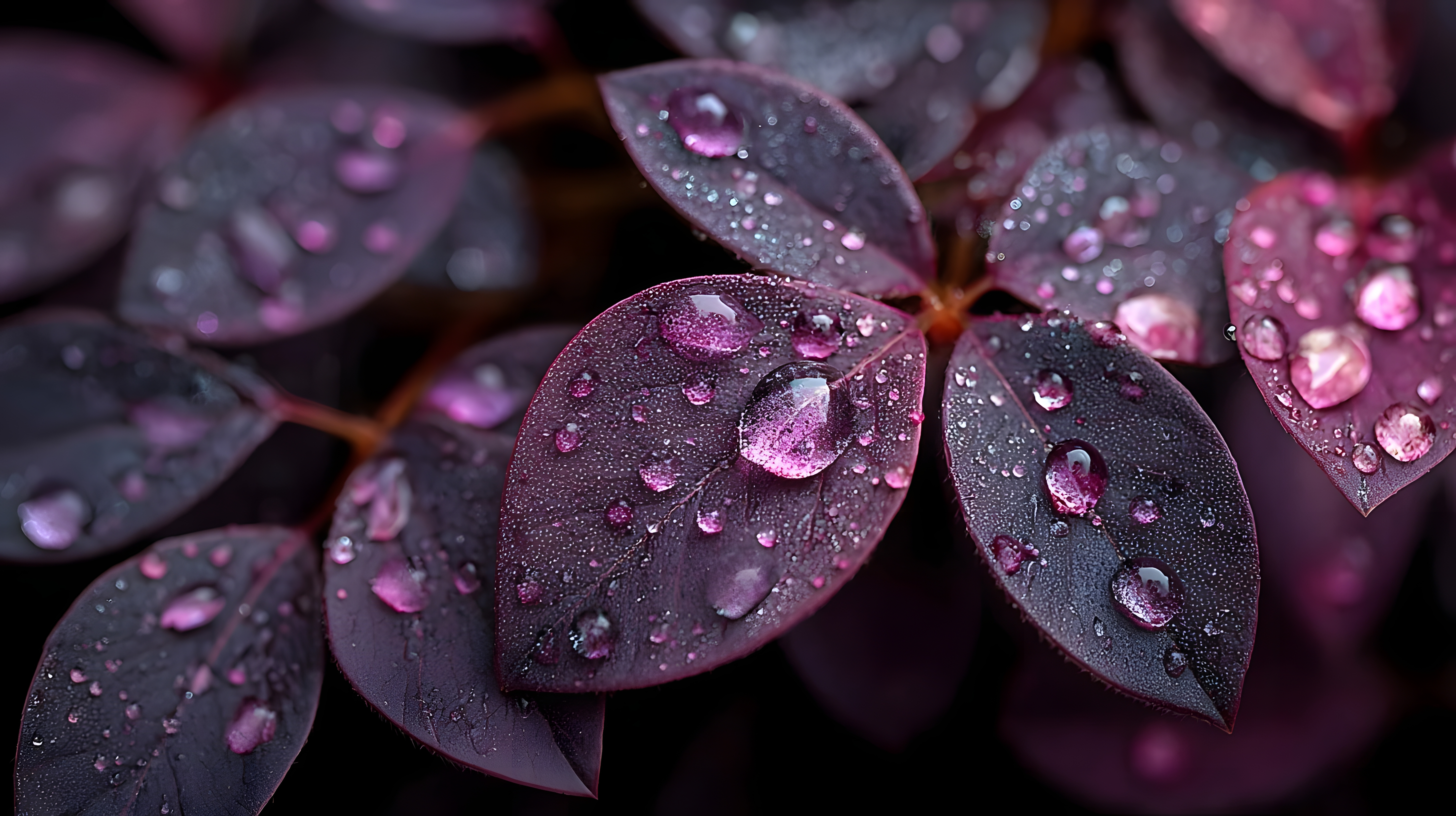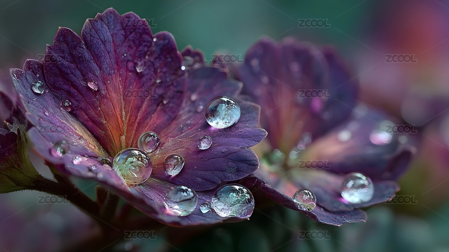 光泽,特写,绿色,紫色,自然,植物,叶子,水滴,露珠,叶脉