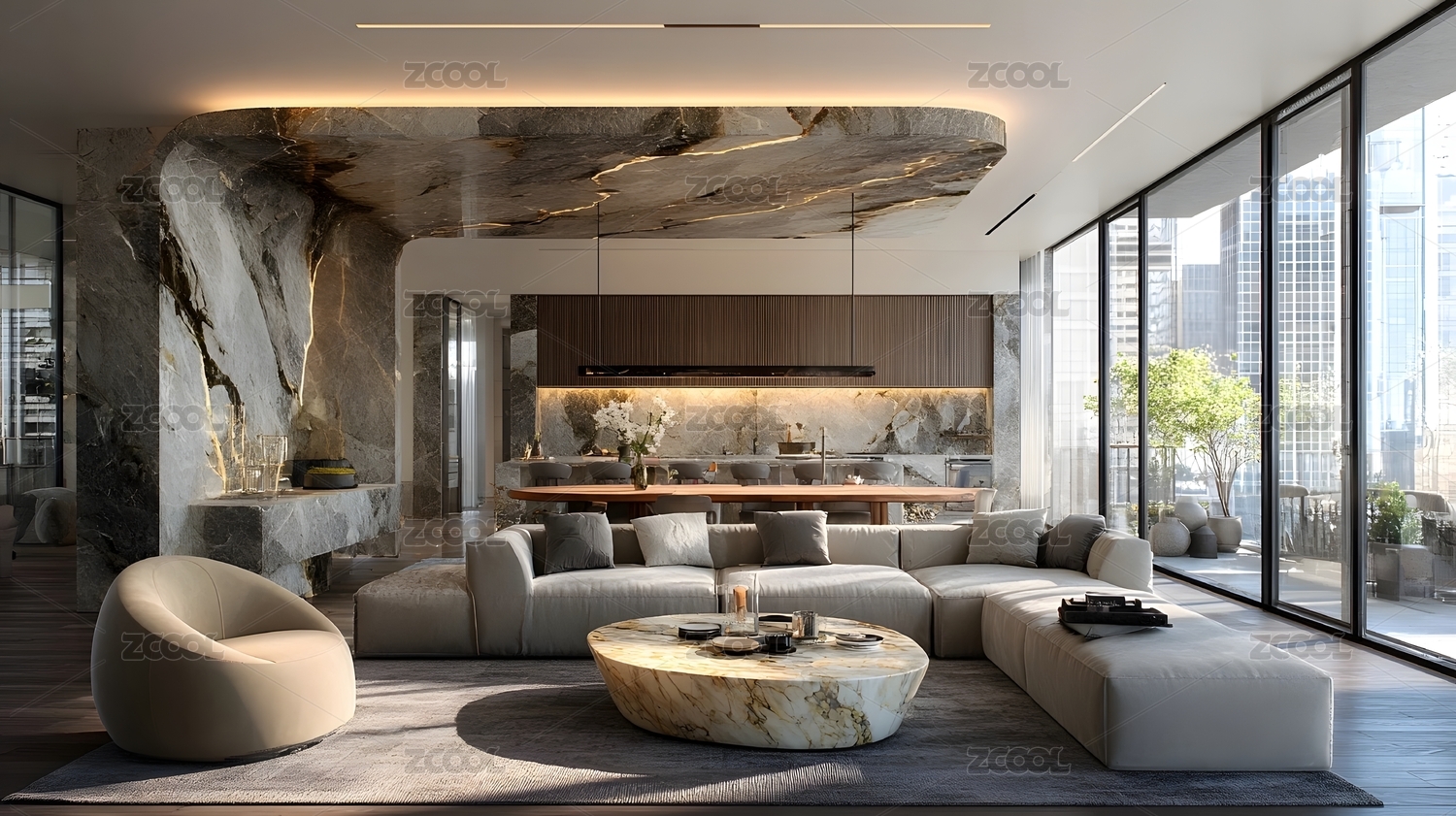 现代简约大理石客厅设计