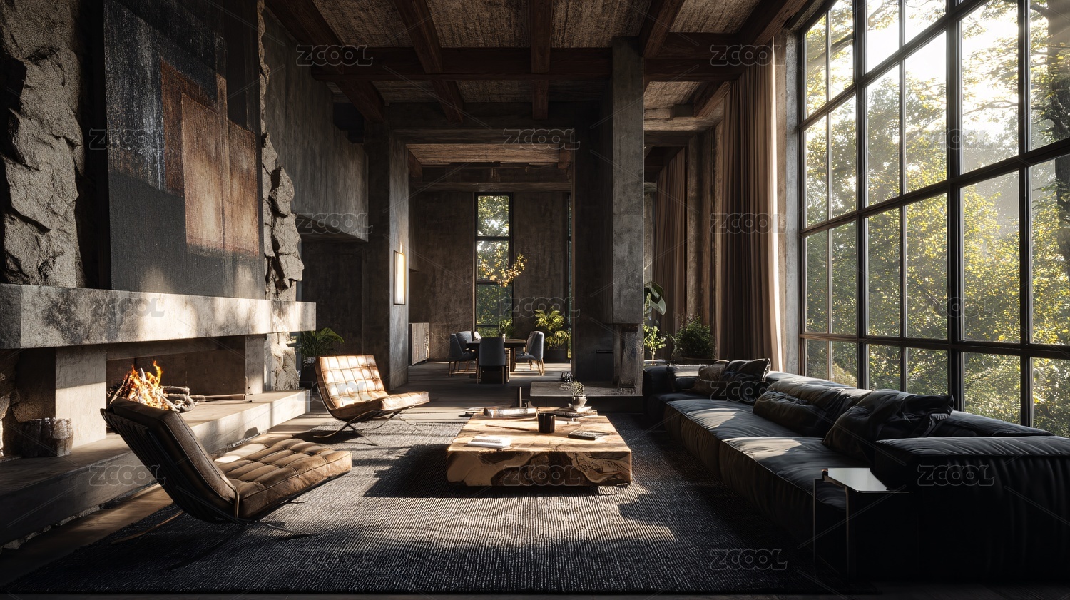 沙发,植物,窗户,地毯,茶几,室内,植物盆,玻璃,柱子,天花板