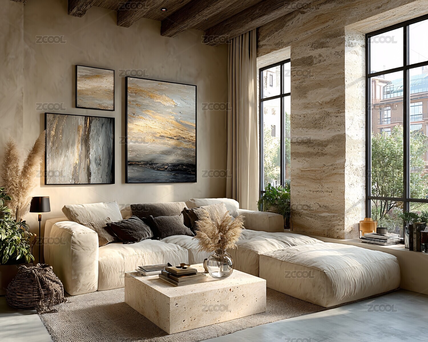 客厅,沙发,茶几,植物,挂画,窗户,拱门,室内设计,家居,装饰