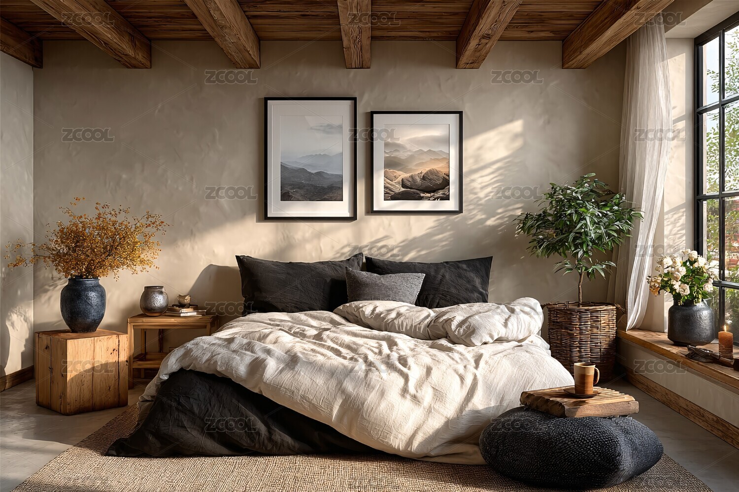 温馨自然风格的室内卧室场景