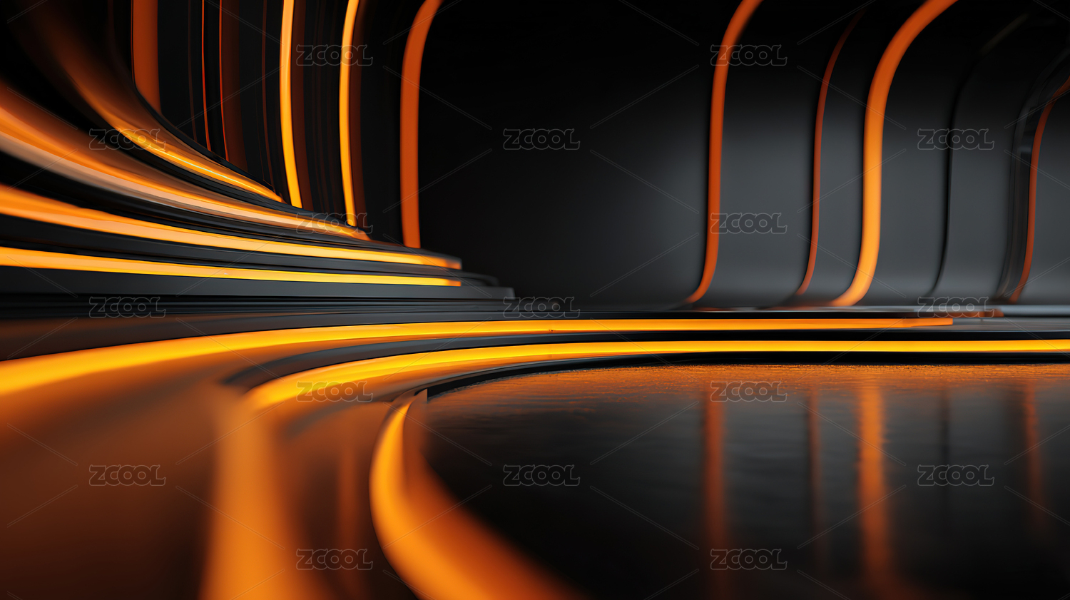橙色霓虹灯环绕的未来感走廊