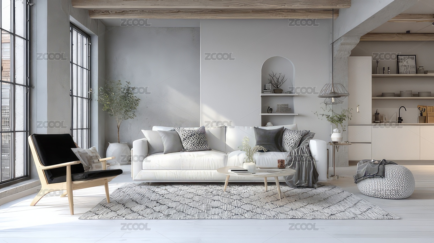 斯堪的纳维亚风格内饰,墙面带有微妙纹理