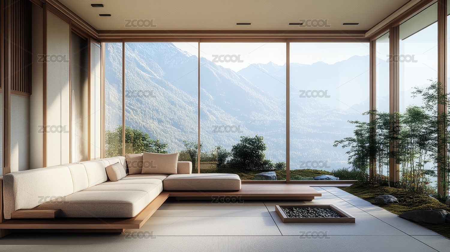 室内,窗户,现代,沙发,茶几,景观,简约,空间,装饰,自然