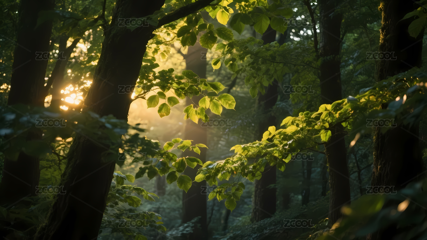 自然,树木,树叶,阳光,森林,绿色,宁静,光影,金色,神秘
