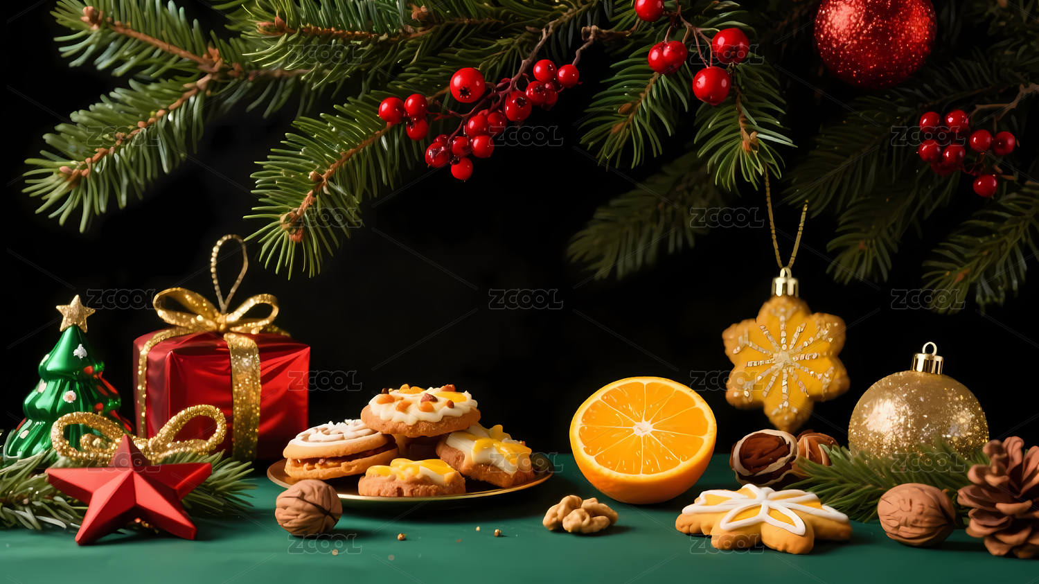 圣诞枝浆果饼干礼盒背景