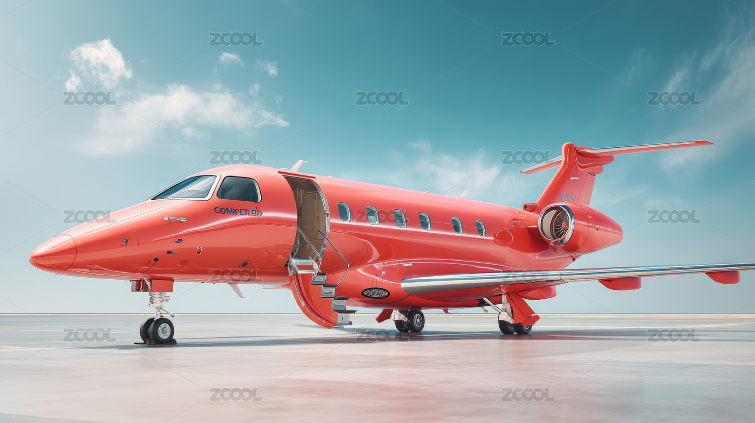 停在跑道上的红色私人飞机