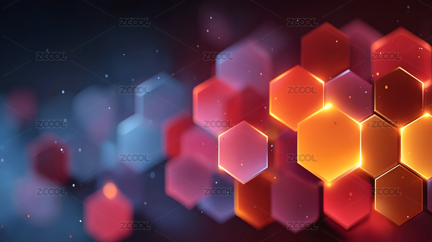 蓝紫渐变背景上的六边形光效