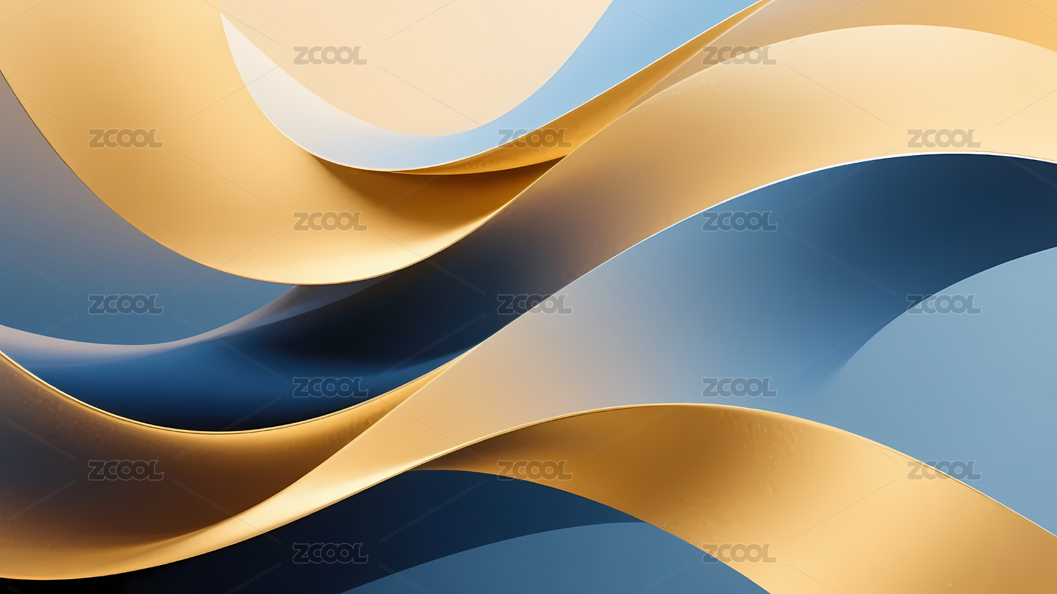 深蓝波浪与金色线条的抽象设计