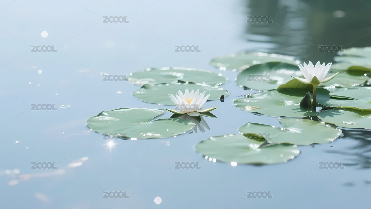 白莲花与清澈水面