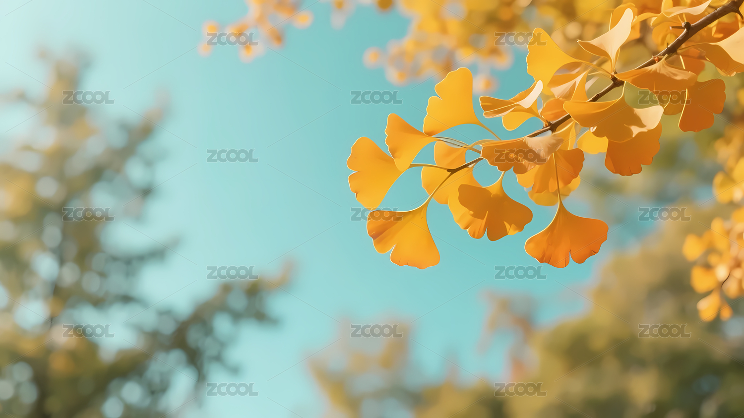 银杏叶蓝天秋日阳光