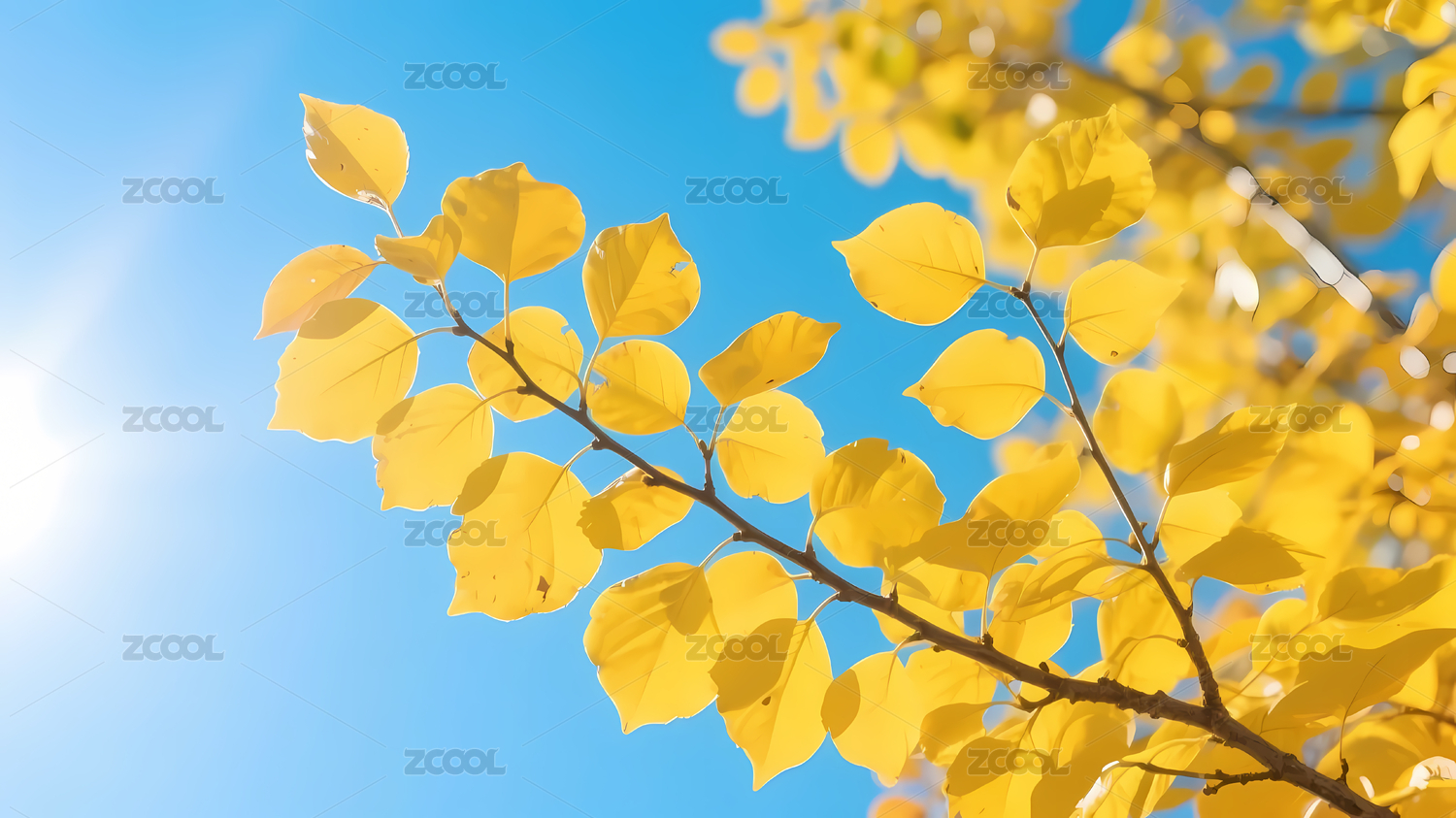 阳光下的黄叶树枝