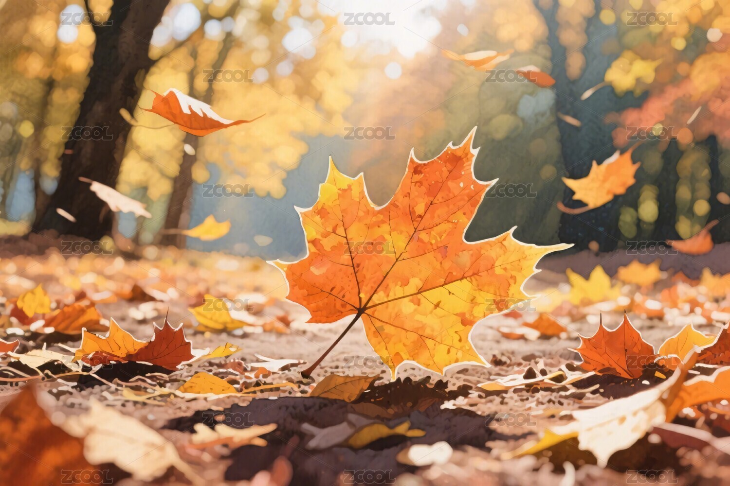 秋日落叶的温暖色彩
