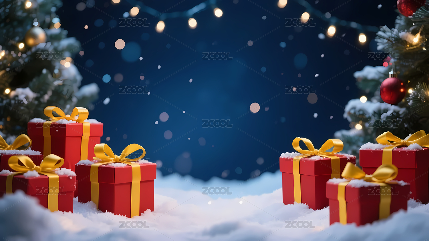 节日礼物雪景灯光
