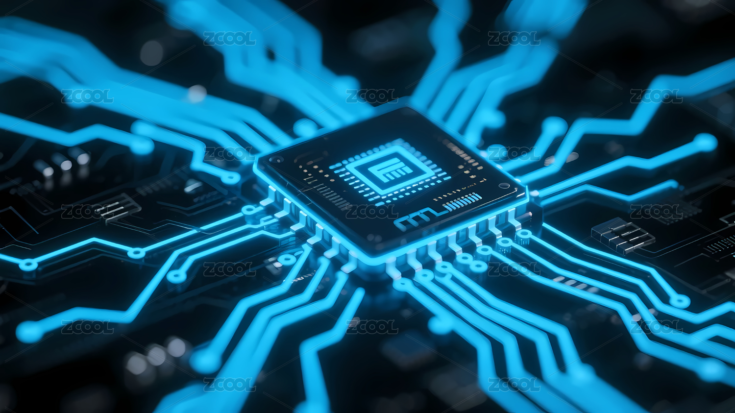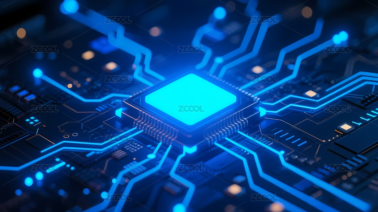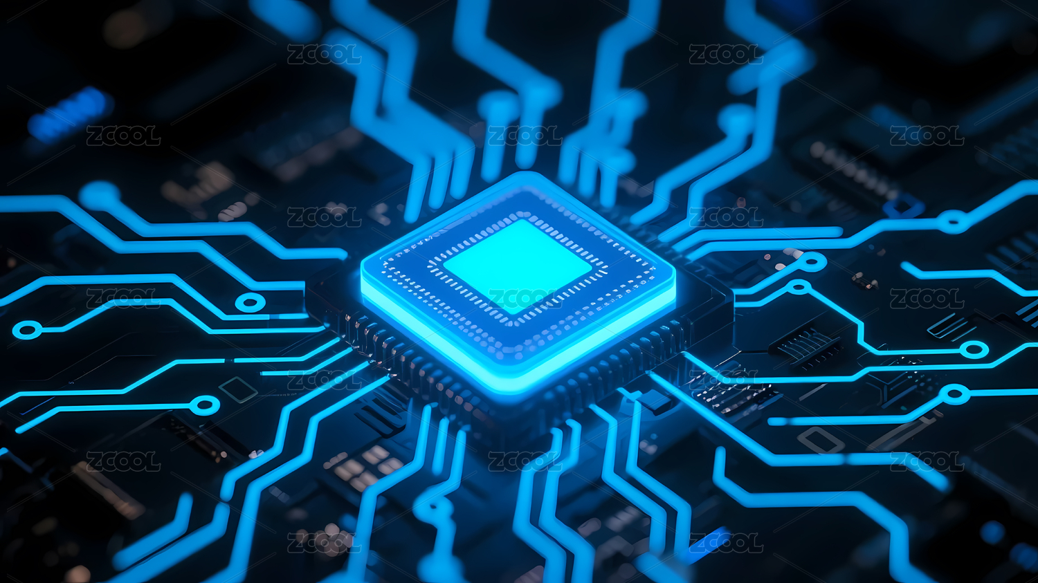 蓝色,背景,芯片,电路,发光,深色,高科技,精密,电子,设备
