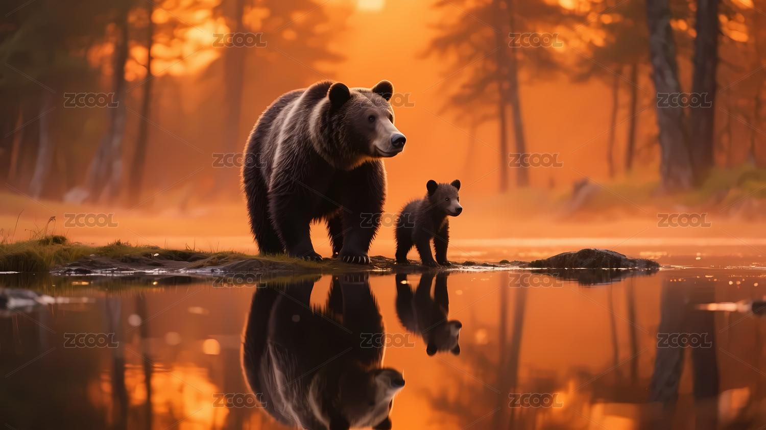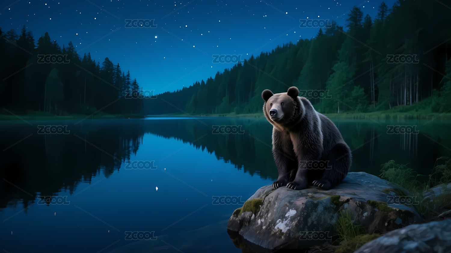 深蓝,自然,棕熊,星空,夜空,家族,动物,棕色,野外,群聚