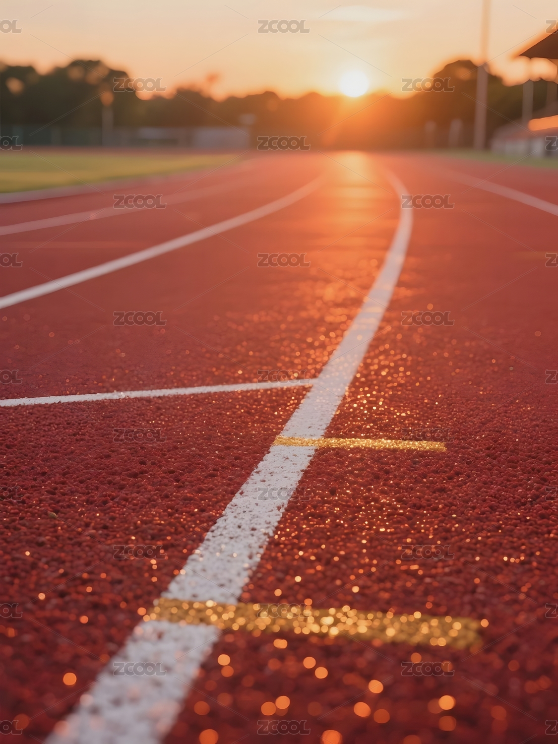 跑道视角俯瞰塑胶跑道边缘纹理色彩光影