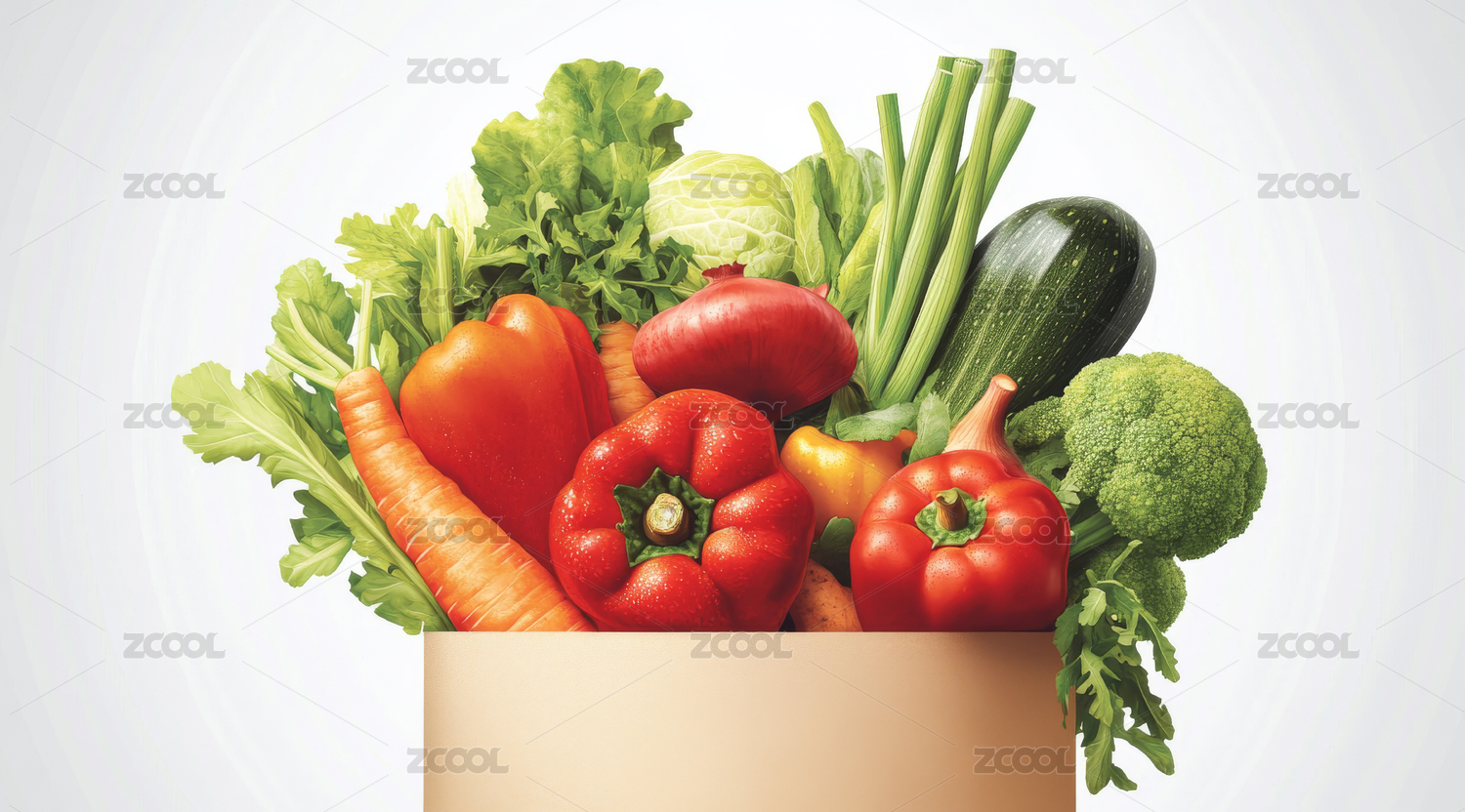 蓝色,蔬菜,水果,纸袋,胡萝卜,番茄,生菜,辣椒,柠檬,新鲜