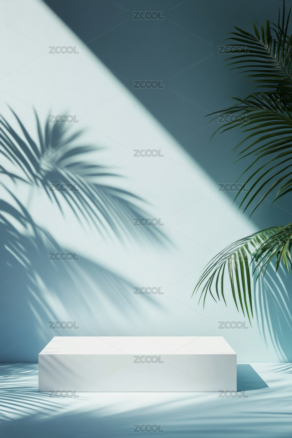 展示台,空置,棕榈叶,光线,背景,简约,现代,艺术,光影,反射