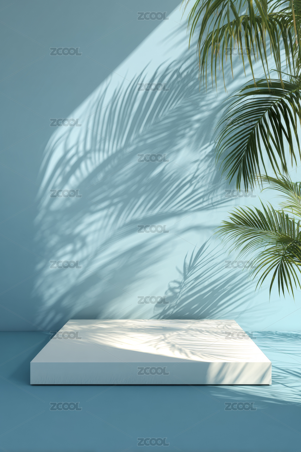蓝色调阶梯与棕榈树场景