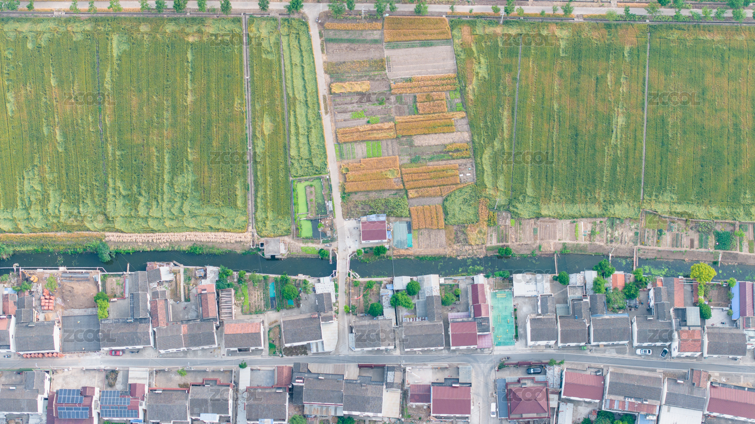 湖北武汉江夏法泗镇平原稻田村庄河流航拍