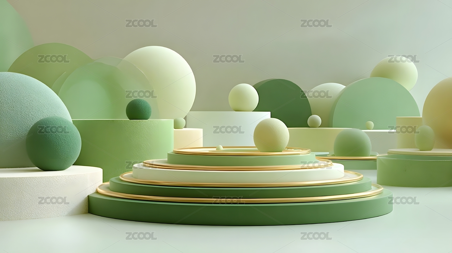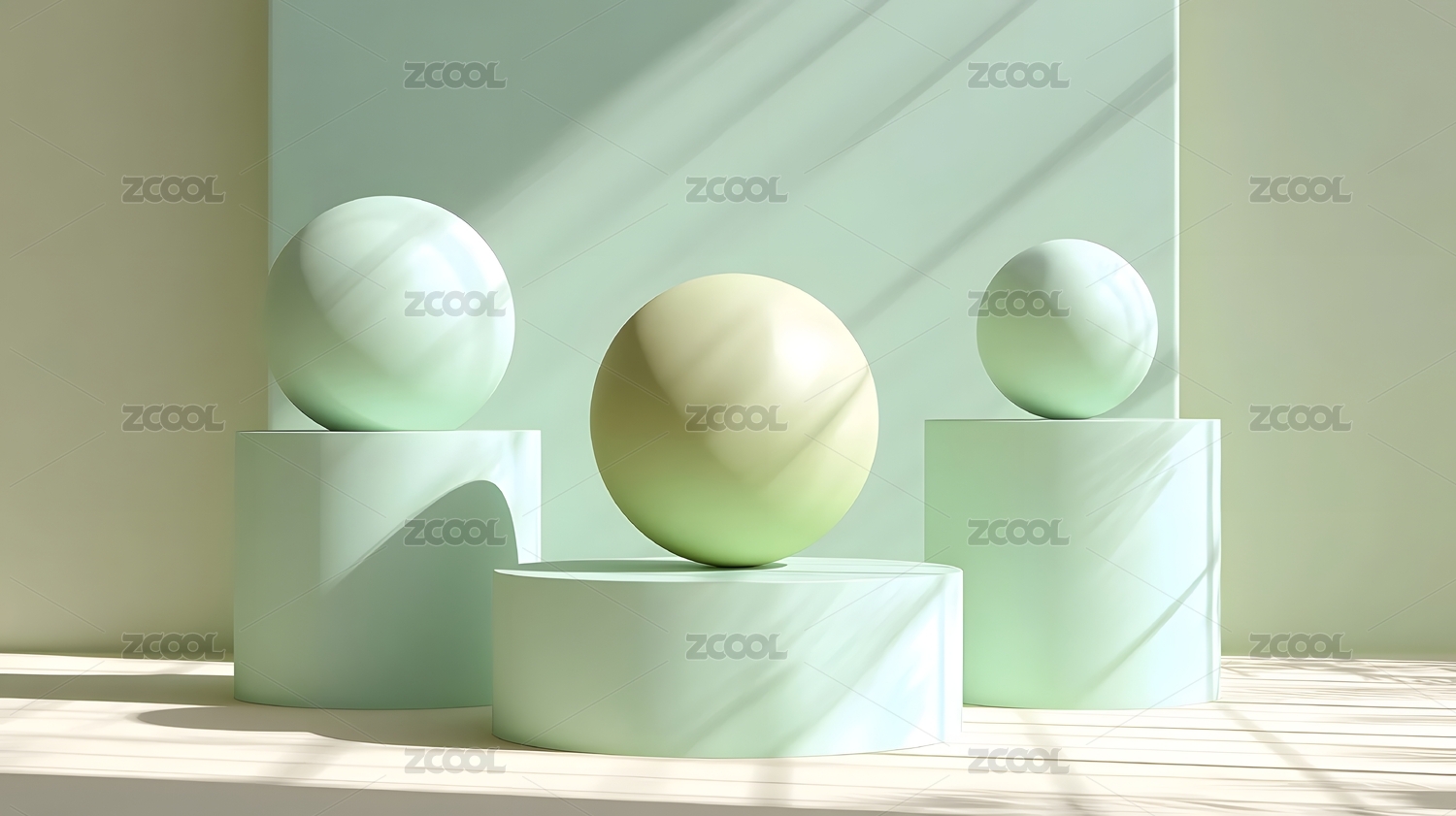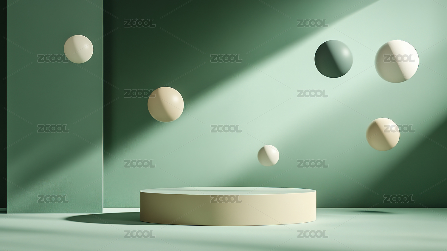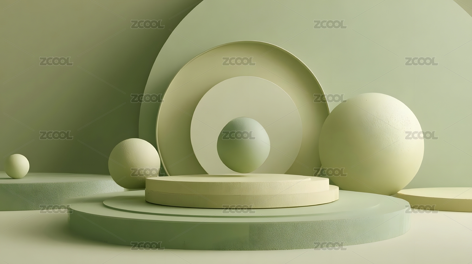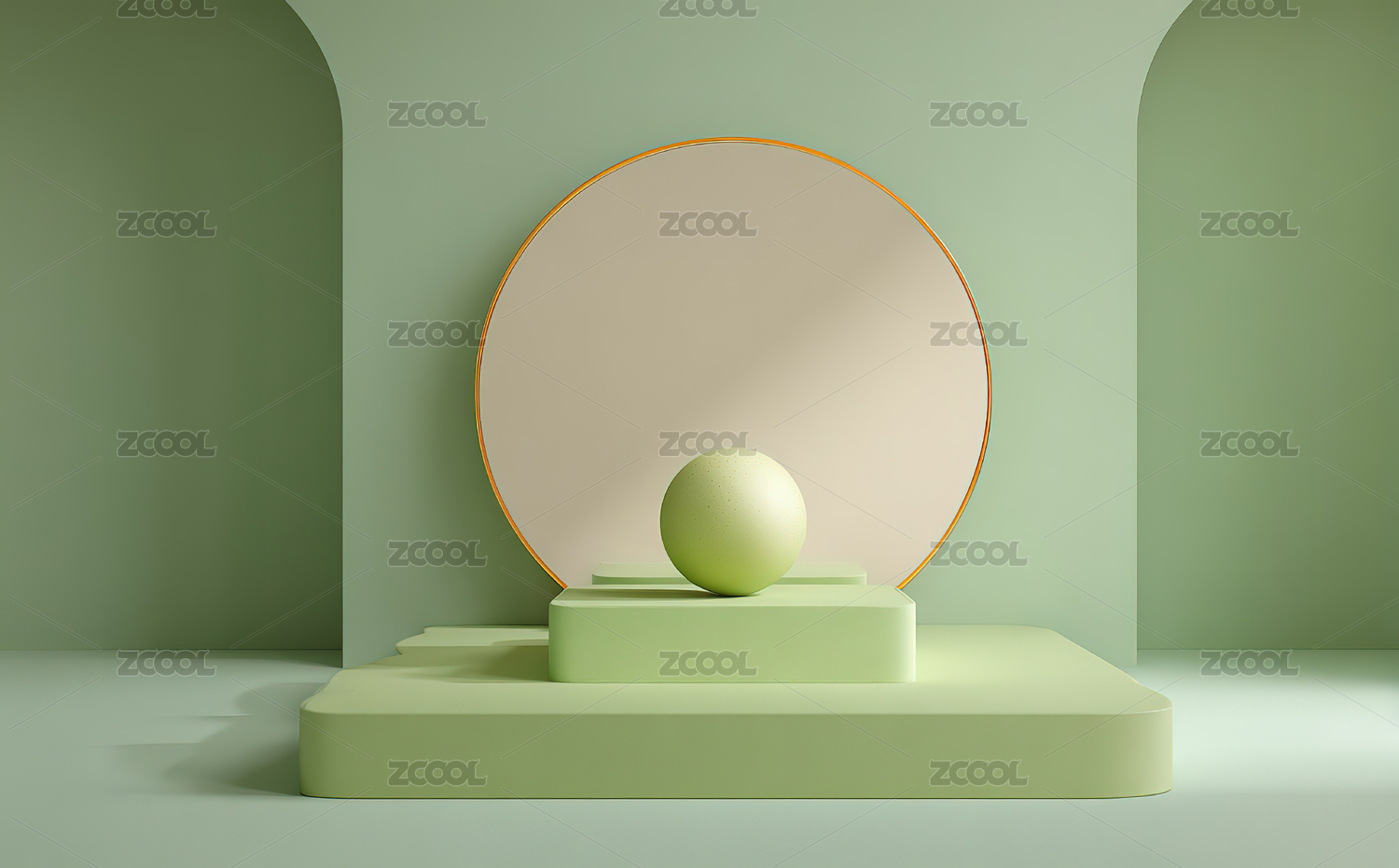 绿色,圆形,光线,室内,简约,几何,空间,装饰,现代,艺术