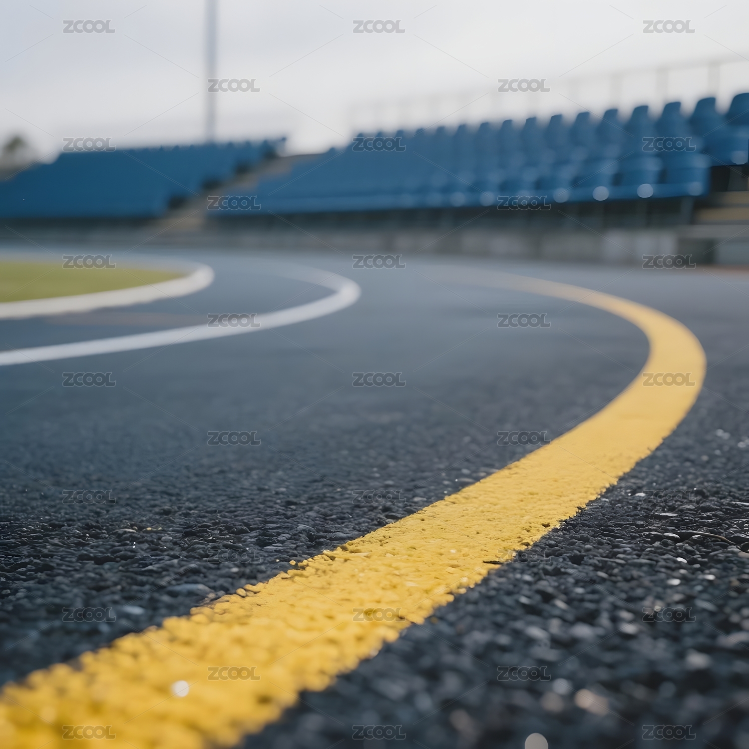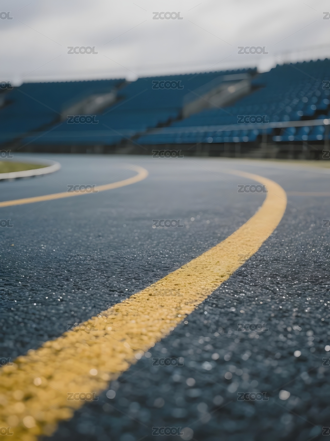 赛道上的黄色标线与空旷看台