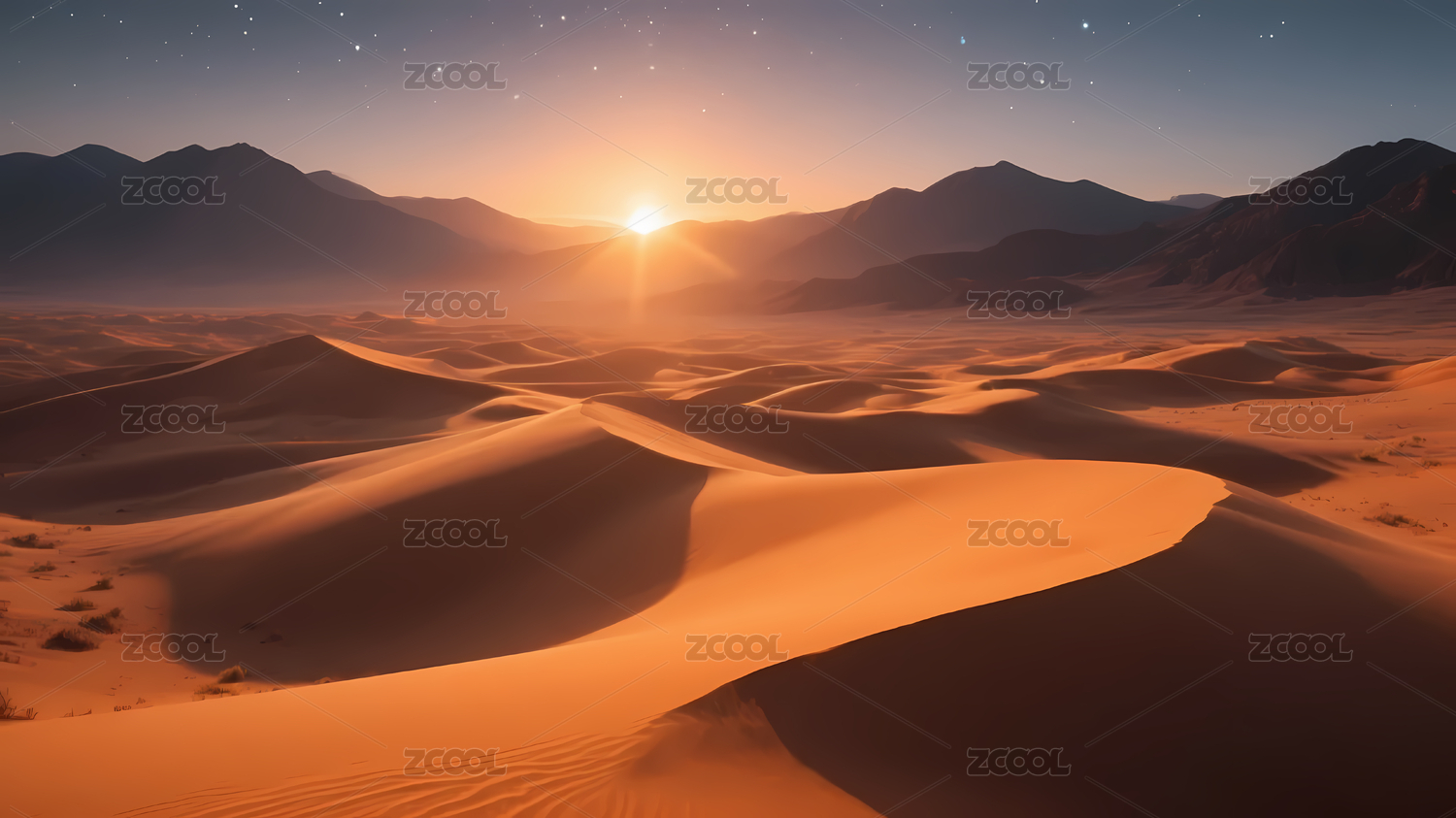 神秘,自然,温暖,深蓝,橙黄,天空,沙漠,夕阳,银河,沙丘