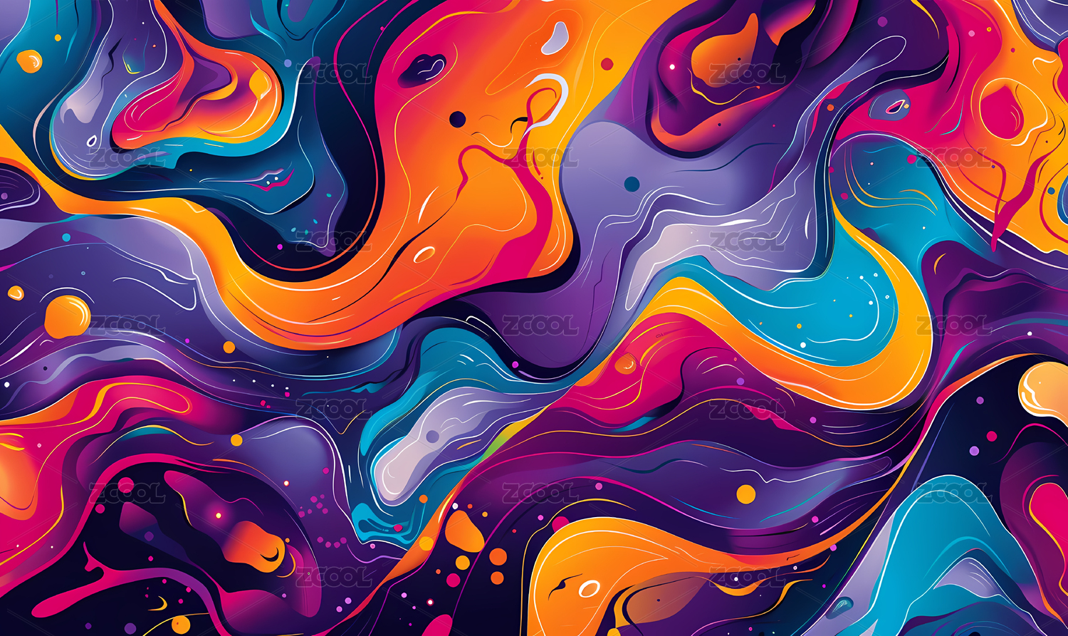 数码霓虹涂鸦大理石漩涡曲线抽象海报背景