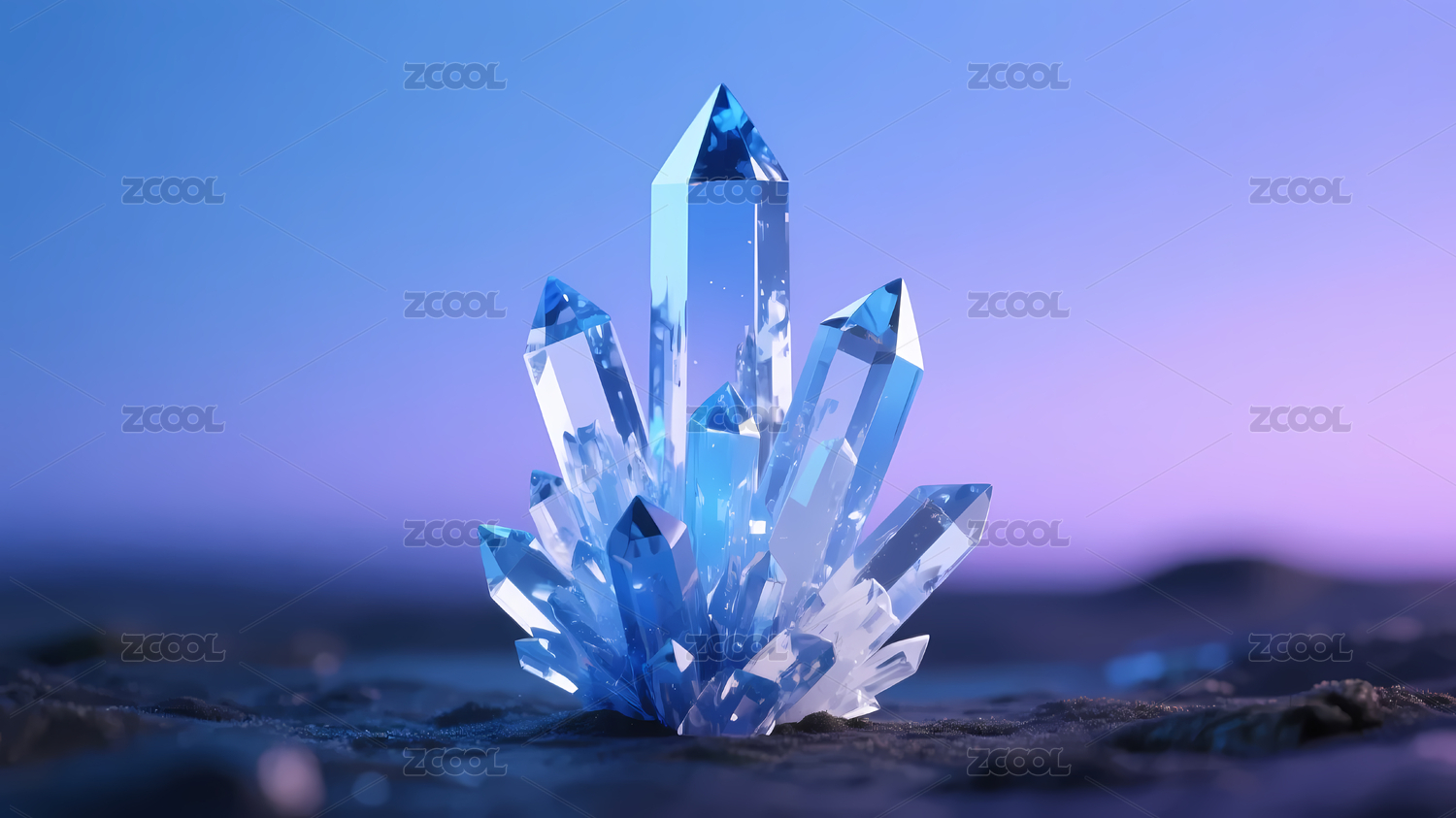 蓝紫渐变水晶山脉