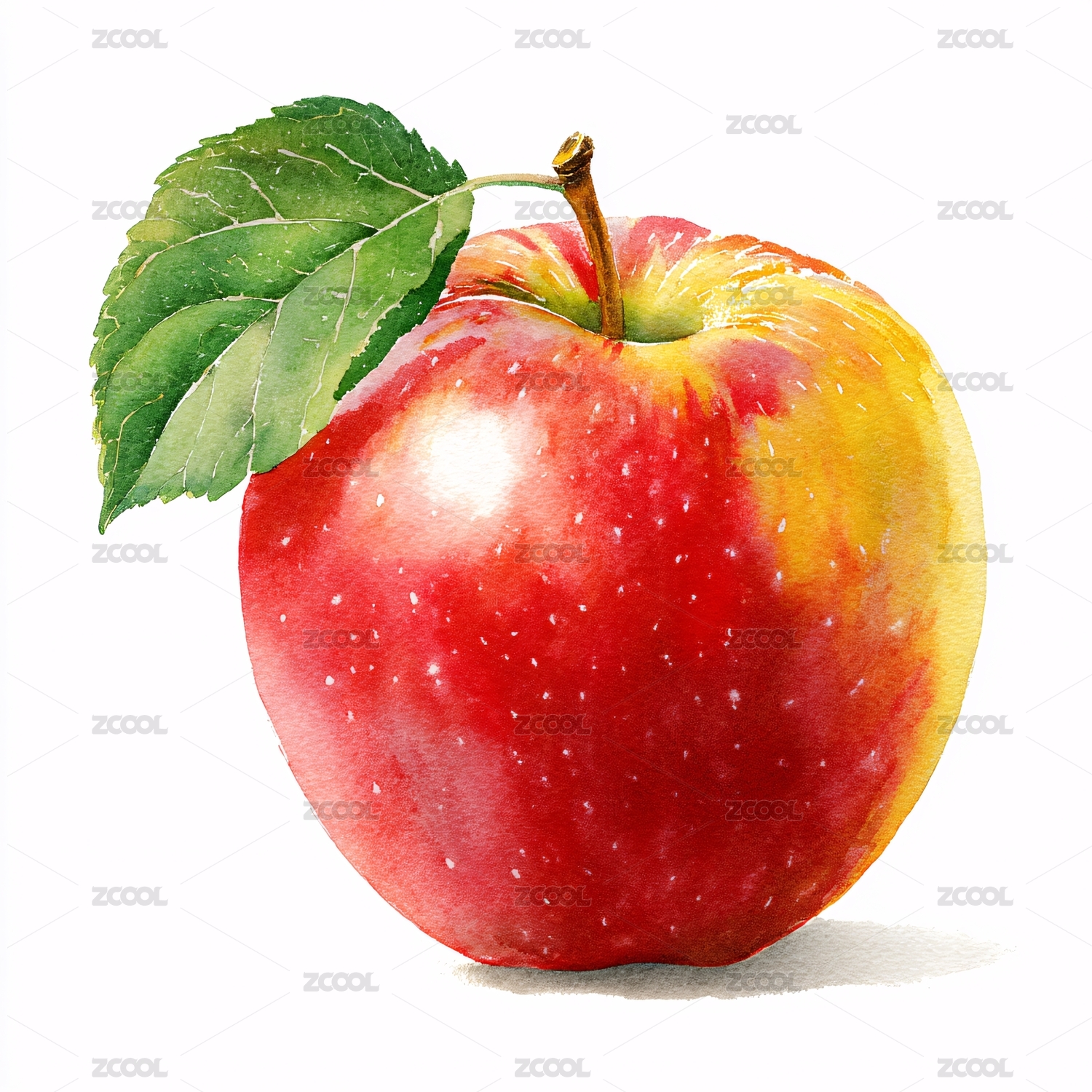 苹果,绿叶,插画,水果,画面元素,主题词,视觉元素,艺术,画面主要元素,果实