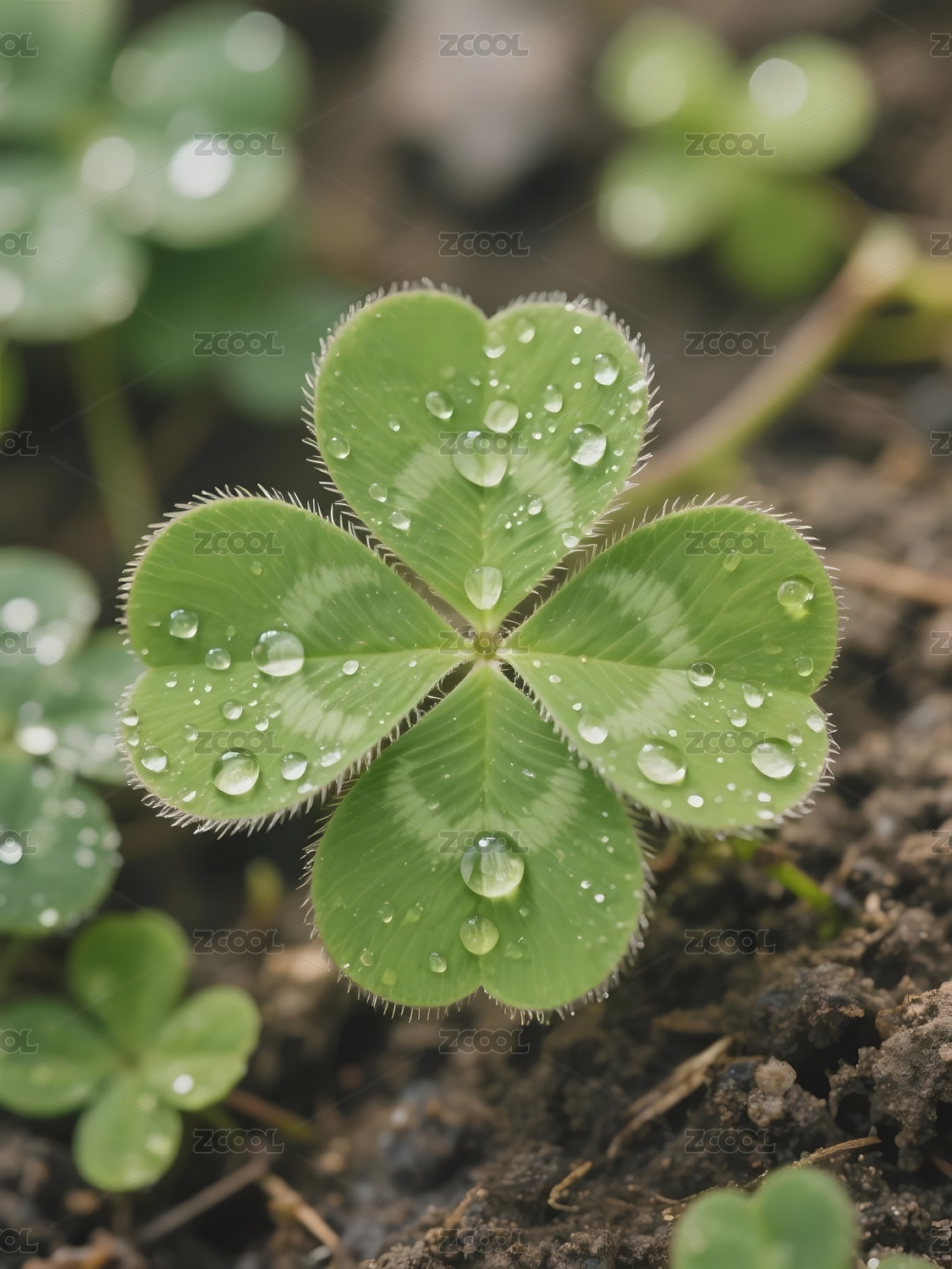 四叶草上的露珠特写