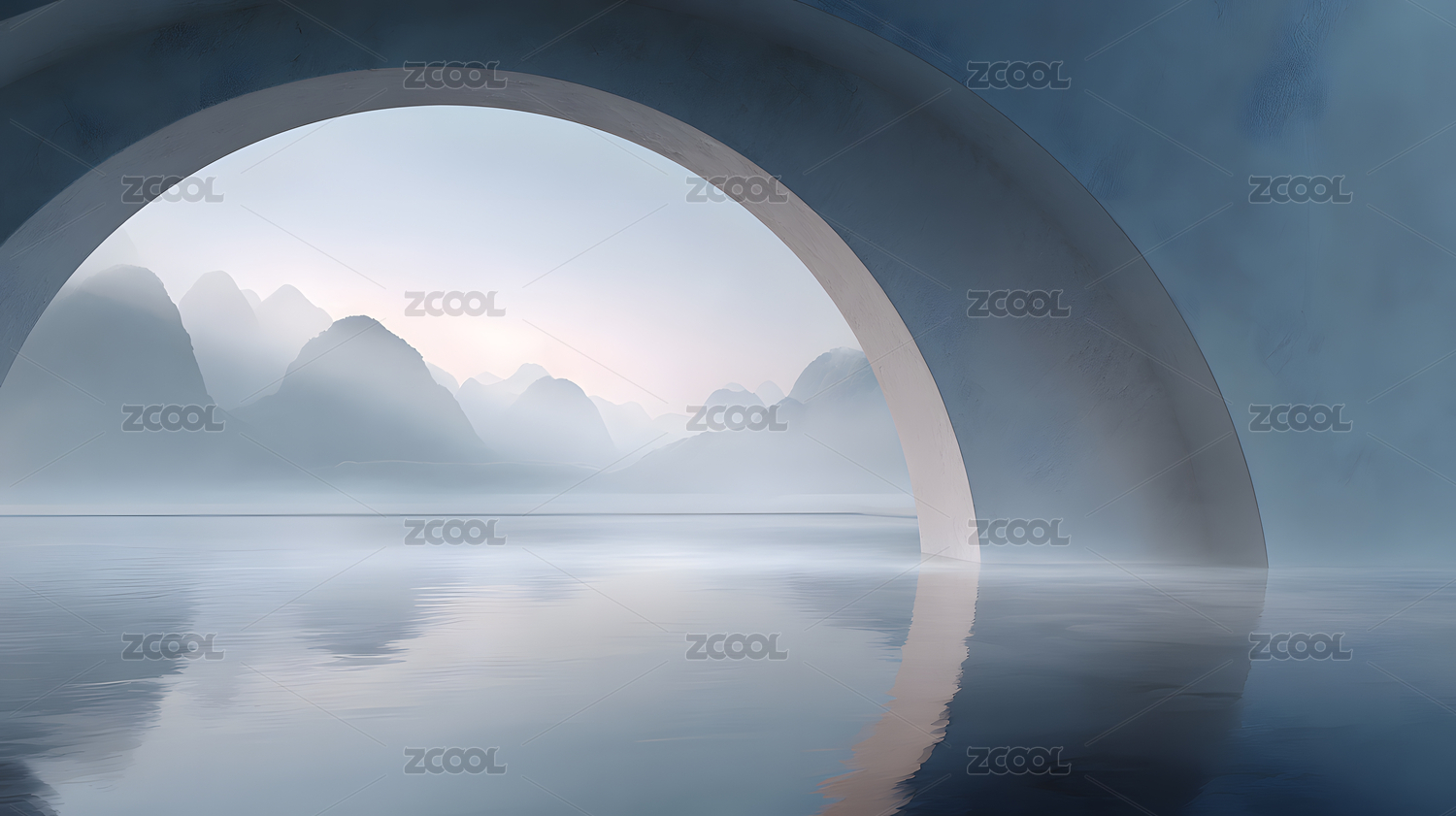 自然,天空,远山,黄昏,圆形,石头,平静,蓝色,光影,静谧