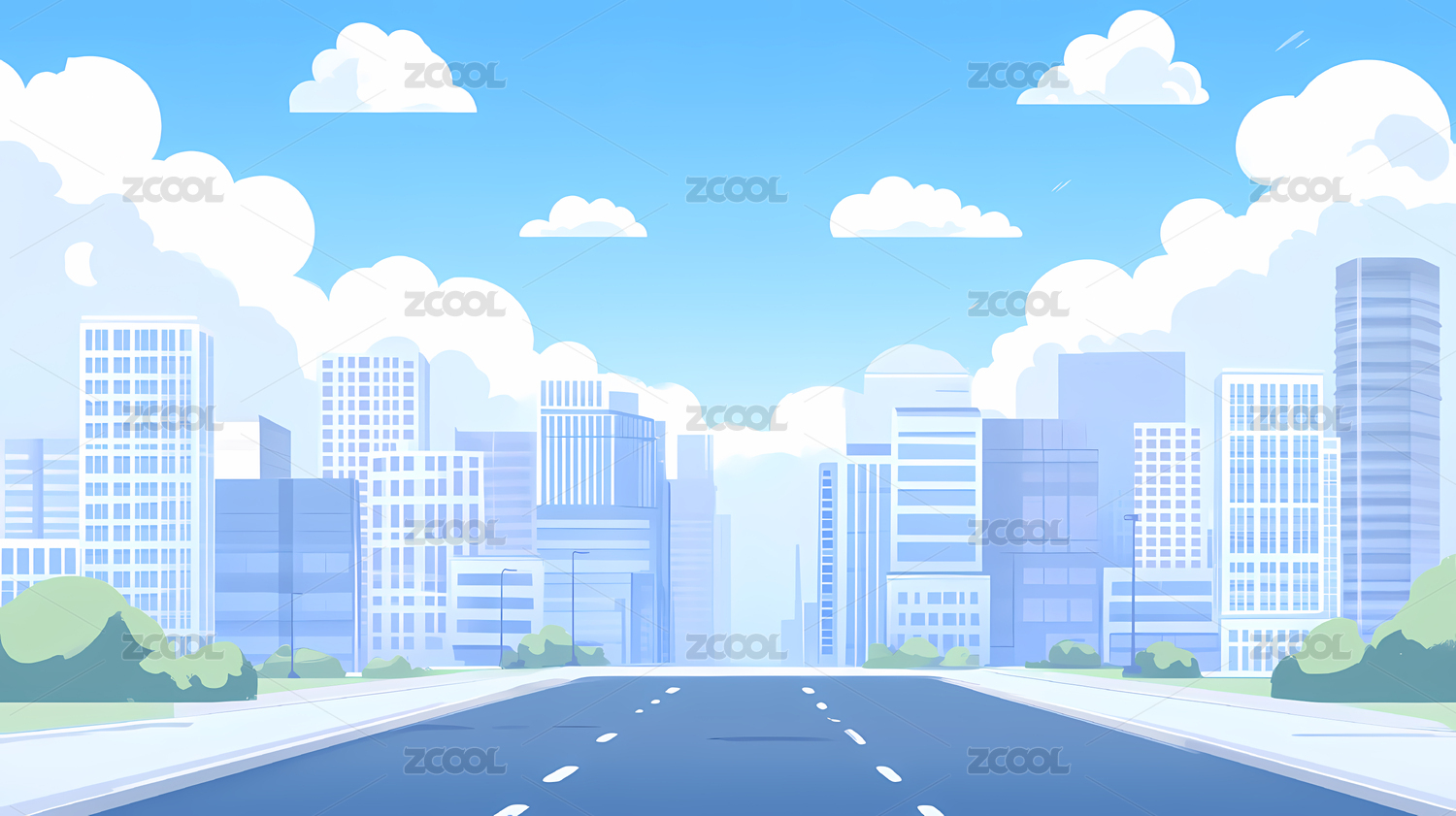 色彩,公路,高楼,天空,城市,建筑,紫色,白云,晴朗,风景