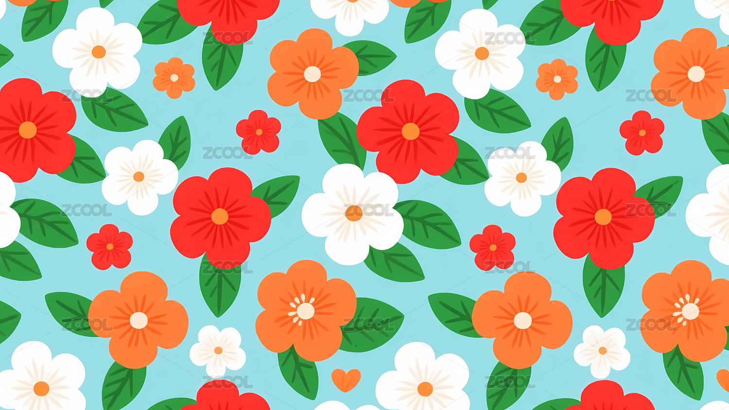 绿色,叶子,浅蓝,花朵,白色,清新,自然,明亮,粉色,橙色