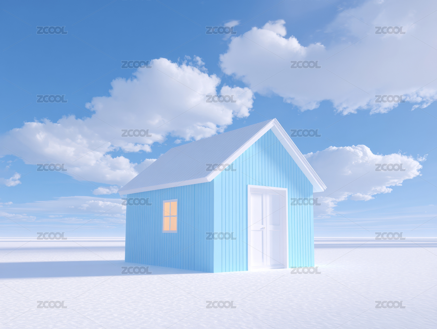 3D渲染卡通房子超现实唯美风格